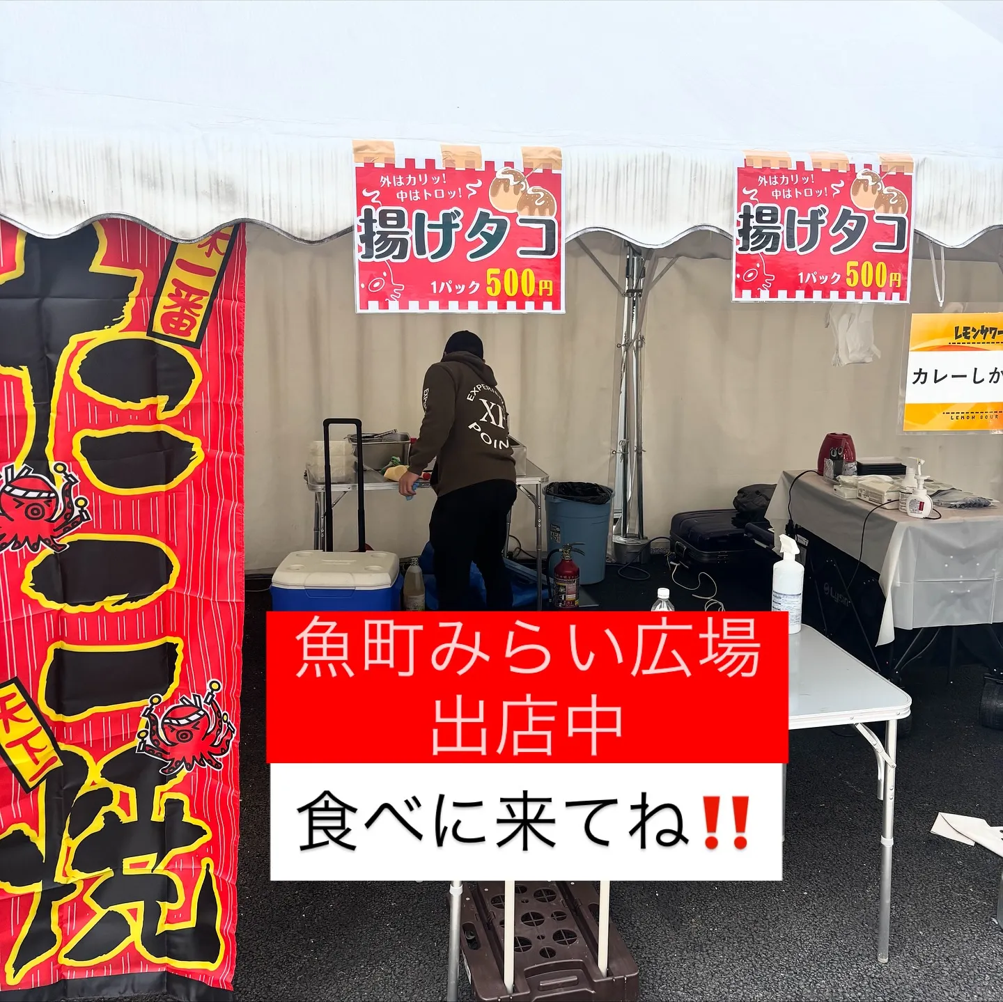 魚町みらい広場でタコ焼き売ってます‼️みらい広場では初の出店になります。カレー風味にも出来ます。是非宜しくお願い致します。#カレーしか勝たん#カレー#たこ焼き#北九州#魚町当店でご利用いただける電…